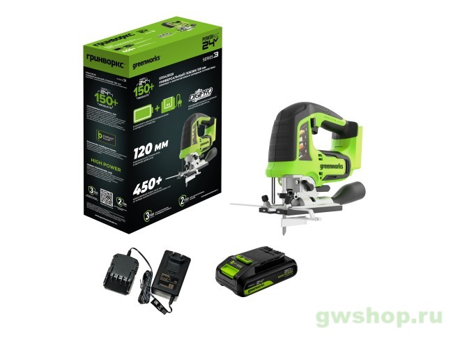 Лобзик аккумуляторный Greenworks GD24JS120 24V, с 1 АКБ 2Ач и ЗУ